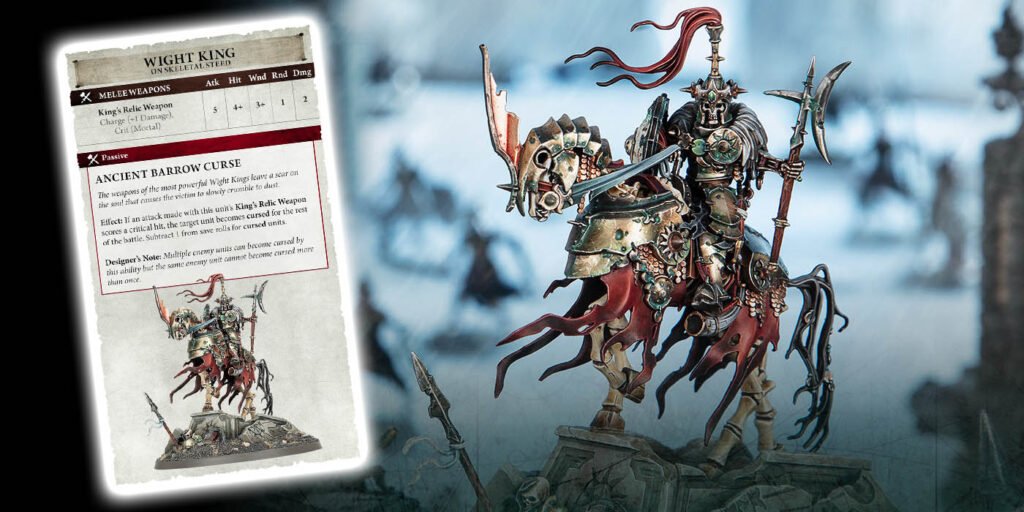 Just having a 5+ Ward for being near a hero is a nice boost for both units. Furthermore, this is a unit your enemy really needs to wipe out in one go. Otherwise, they just come back with the Cursed To Rise Once More rule. Good luck taking them all out with that 5+ Ward. Oh and you don’t want to get charged by them either. They have Crit (Mortal) and Charge (+1 Damage) on their Barrow Lances.