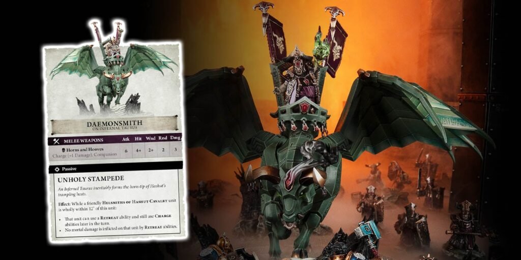 Just like it was mentioned in the preview rules preview, the Daemonsmiths also benefit from the Daemonic Power Points. In this case they are granted Daemonic Resilience which can also lead to the benefits listed above. Unholy Stampede allows for this unit to use Retreat abilities and still use Charge abilities later in the turn. Additionally, there’s no mortal wounds applied to them for using the Retreat abilities. Hence the whole “unholy stampede” name. That and it’s a bull. Get ready for those horns!