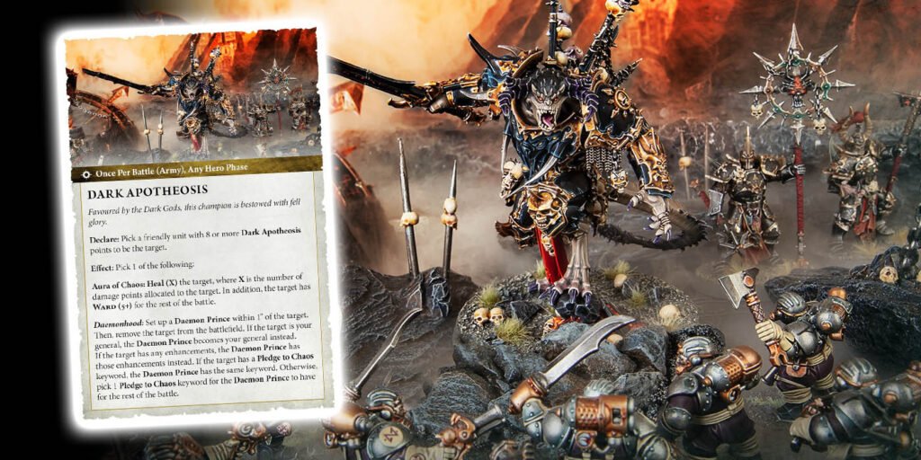 This is a pretty big change overall. Getting 8 Dark Apotheosis points seems doable as long as the character in question stays alive. It’s really interesting to see the option to keep the character and just go for a heal with a bonus ward for the rest of the battle. Or, you can just swap them out for a Daemon Prince. I think this might make the Daemon Prince miniatures a bit more popular in the long run.
