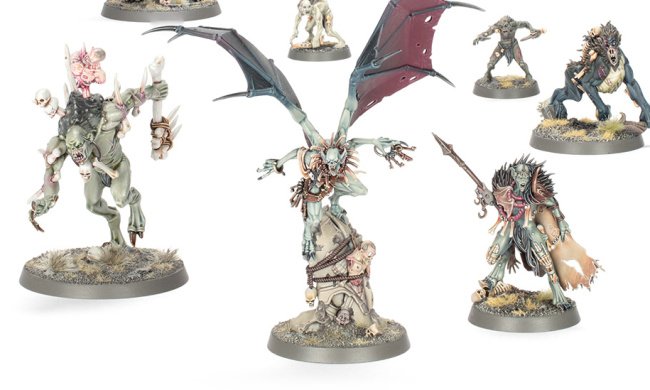The Cursed Shacklehorde revolves around a Spirit Torment and their Chainghasts. They are accompanied by 10 Bladegheist Revenants, 10 Dreadscythe Harridans, and 2 Dreadblade Harrows. The Dreadblade Harrows are mounted on spectral steeds.