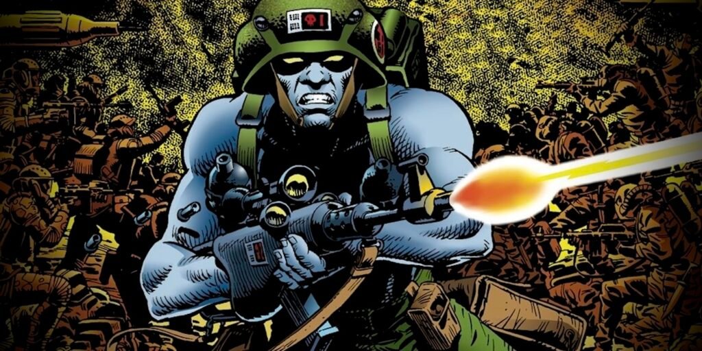 Fast forward to 1981, where the comic held a reader’s poll to determine what sort of stories would be published. Future war was a leading choice, so Gerry Finley-Day was tasked with coming up with something, and he did! Alongside editor Steve MacManus and artist Dave Gibbons, Rogue Trooper was born. If the name Dave Gibbons sounds familiar, it should. He’s got quite the bibliography.