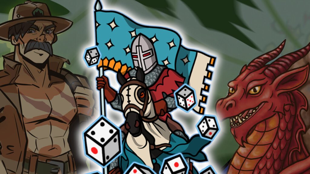 You’re a knight on a quest, rolling and rerolling dice, looking for sets or straights that will turn into big hits on your opponent. Between fights you can spend gold to buy passive upgrades, unlock new scoring patterns, or buy weird new dice with different patterns of numbers on them. Roll dice, hit knights, make numbers bigger – classic stuff.
