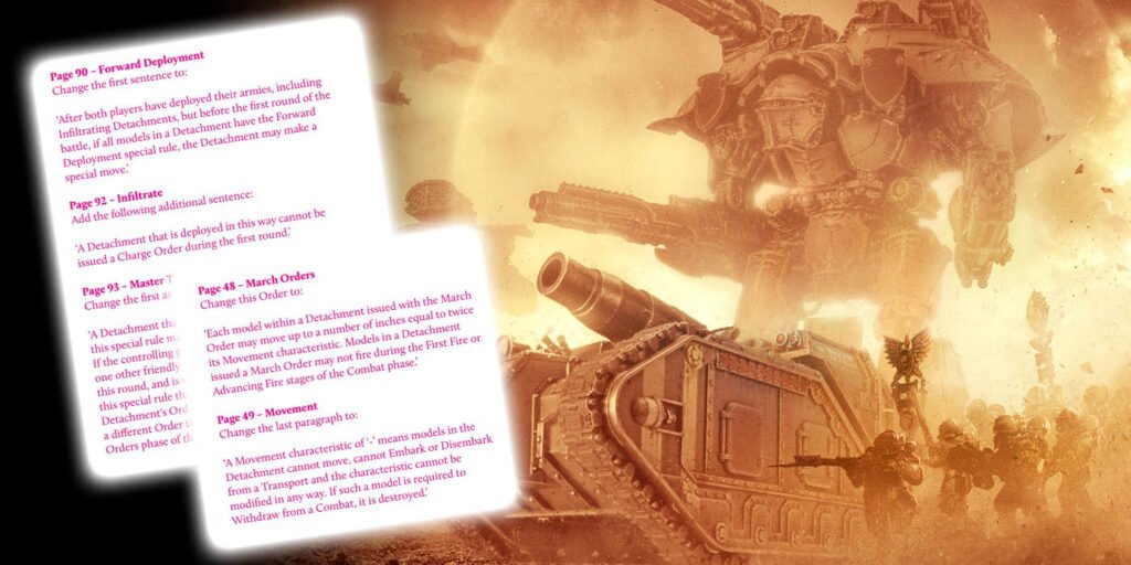 “A number of these help to address timings of effects or order of operations, such as in what order the Infiltrate and Forward Deployment special rules are used, while others clarify some unusual interactions that can occur during a battle, such as how certain rules and Detachments work with Structures and any Detachments that might be Garrisoning them. “