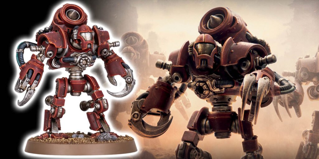 Built from a fusion of existing technologies known to the Mechanicum, the Ursarax are the pet project of one Explorator Magos Enabrin Falkan. Notoriously independent, Falkan required a highly mobile combat unit and found his answer by combining the Thallax cohorts of the Ordo Reductor with a number of his own discoveries – and an oversized jump engine.