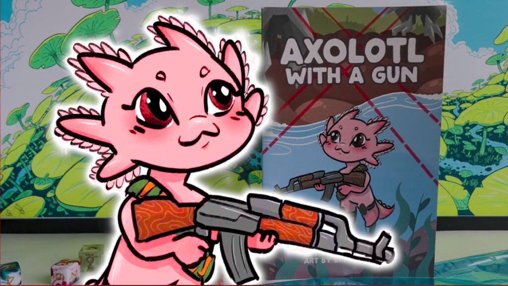 “The horrors persist, and so must you.” That’s an unusually heavy first statement to see on a Kickstarter page called ‘Axolotl With A Gun’. The pastel color scheme and chibi art might fool you into thinking this is a skin-deep, silly tabletop RPG, the kind that brews unexpected word combinations to maximize marketability. That’s not what’s happening here. Axolotl With A Gun has plenty to say – as well as plenty of cartoon rocket launchers.