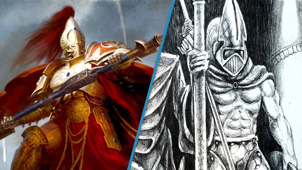 YouTuber Arbiter Ian does a great job tracing the development of the Custodes’ armor style over the many decades from that original Rogue Trader description to their emergence as a full Warhammer 40k faction. Custodes were shown wearing armor as early as 1993, in John Blanche’s artwork of the Golden Throne in the Warhammer 40k second edition rulebook.