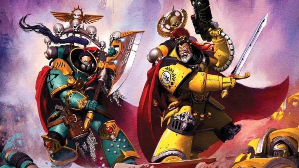 Warhammer the Horus Heresy RPG - yellow armored Imperial Fists defend against assault by the Night Lords