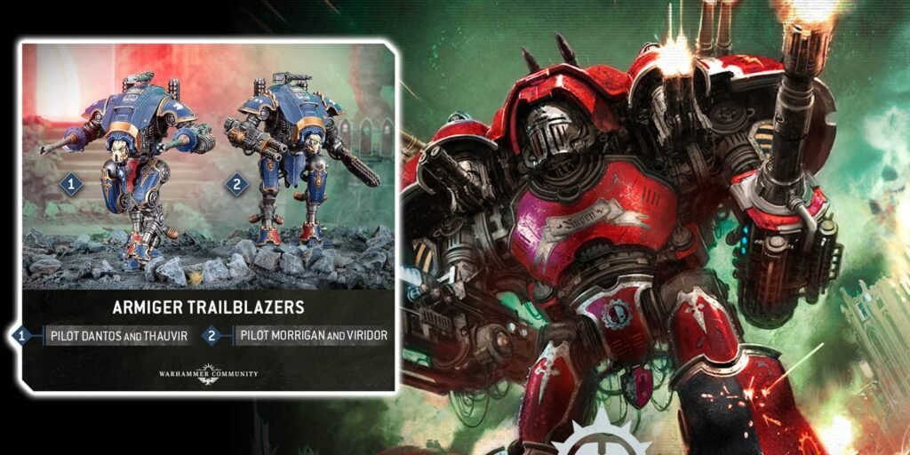 “With a small handful of large models at your disposal, it can be tricky to maintain your presence all around the battlefield – especially if you lose a Knight or two early in the game – so Armigers are an important way to spread your influence further. They pack serious speed and respectable damage into their smaller frames, with a choice between short-range Warglaives and long-range Helverins letting you contest objectives anywhere on the board.”