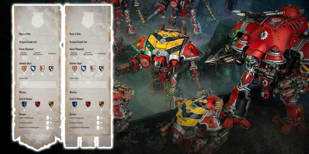 Starting off, each one of your pilots will get their very own Pilot Crusade card. These are kind of like the unit sheets for other units on Crusade. After that, it’s a matter of tracking their Chivalric Quests.