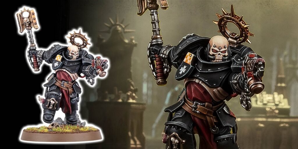 The Execrator, always a favorite of the Black Templars, is a warrior-priest who really puts the priest into it. With litanies of hatred they will inspire their allies to destructive rampages. You can outfit them with one of two crozius tops, and an absolver bolt pistol, pyre pistol, power sword, or relic.